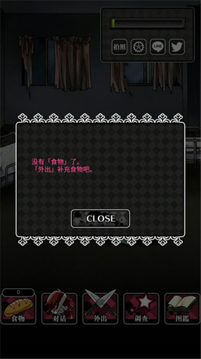 玩家进入游戏后会看到一段剧情,这个剧情是自己与女朋友的对话,女朋友说自己饿了想要吃到食物,而这时也没有食物了,玩家要做的就是去寻找食物。