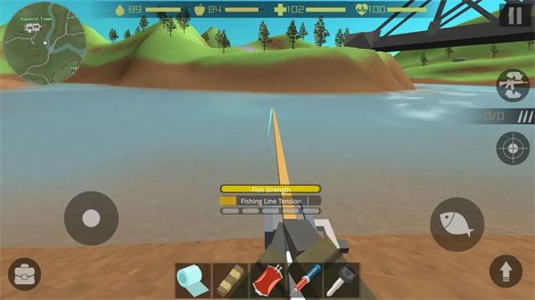 分解物品获得材料,制作工具武器和其他的赖以生存的用品,使用鱼竿和鱼饵钓鱼。