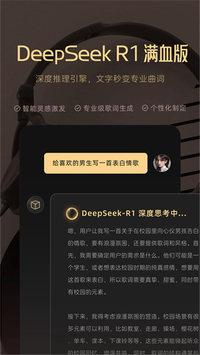 接入DeepSeek先进模型,让歌词创作更智能、更具创意,贴合情感与主题。