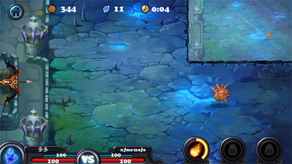 游戏中通过触屏控制射击方向,并点击技能图标释放法术。