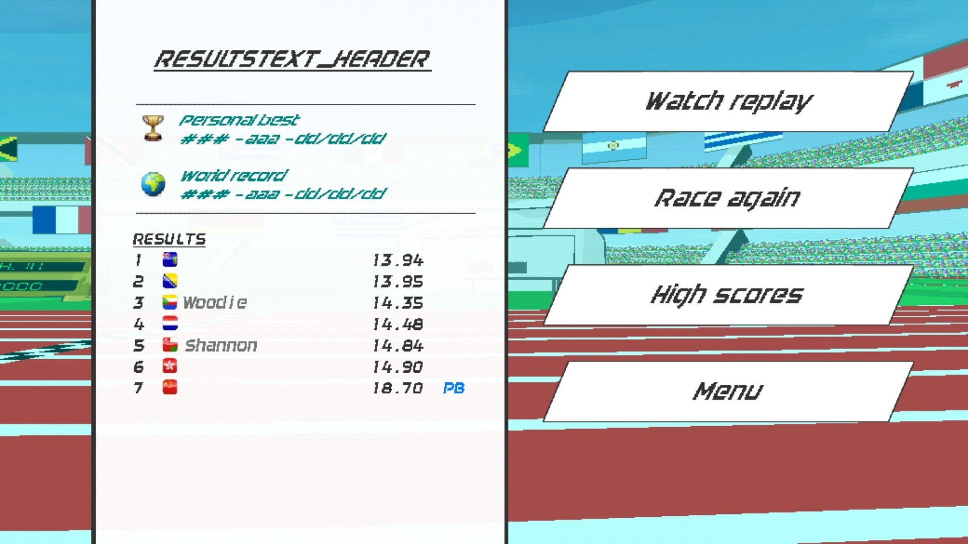 1、可以创建具有自定义外观和统计属性的田径运动员,并能够自定义比赛场地。