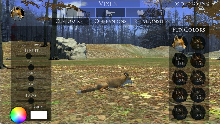 2、在外观编辑界面中,玩家可以自由调整狐狸的皮毛颜色、体型以及其他外观细节,打造属于自己的独特野狐形象。