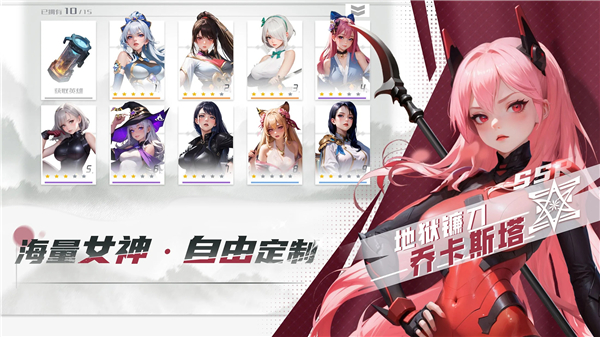 在这里,你可以找到各种各样的漂亮女孩,她们会和你并肩作战,每一个角色都拥有各种各样的战斗技巧,各种风格的战斗女神等着你,还可以随意换装,让你成为最强大的女神队伍指挥。