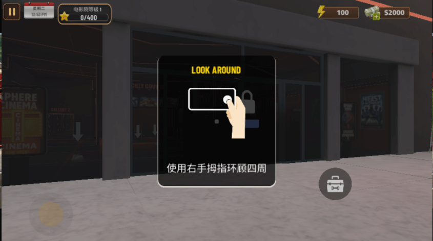 5、首先点击锁打开电影院;