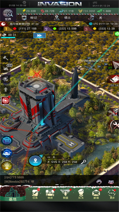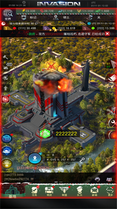 在基地建立之初,进行能源基地、炼钢厂、炼油厂、农场以及金库的建设,可以为后续发展提供基本的资源支持。资源建筑的等级越高,其每小时产量也会相应增加。