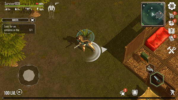1、首先进入生或死生存游戏,然后移动摇杆控制人物的移动方向。