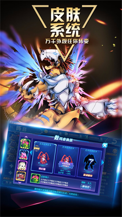 2、数码兽培养:通过抽卡、副本挑战等方式收集数码兽,然后用经验卡、数码兽碎片等资源升级进化,提升战斗力。