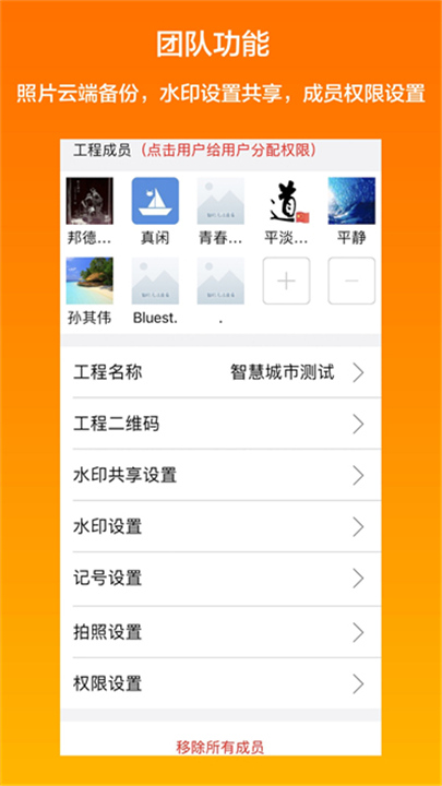 5、团队共享,邀请团队成员加入工程,管理团队成员的施工拍照。