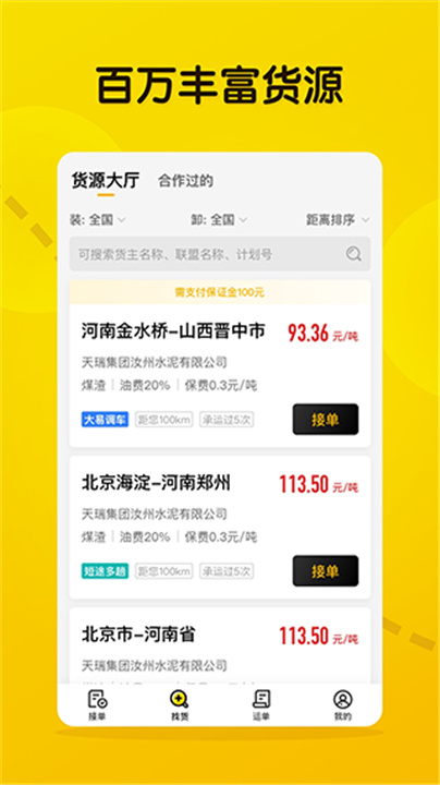 1、多种接单场景:首页接单、找货申请接单、扫二维码申请接单,全方位触达货源