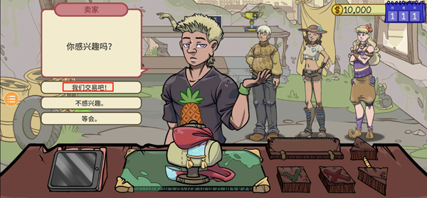 4、跳过之后,然后就是我们第一个卖家上门了,我们需要根据点击让我看看;