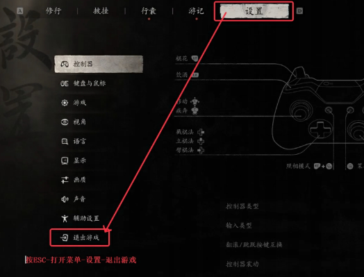 1、在游戏中,按ESC设置退出游戏退出至桌面;