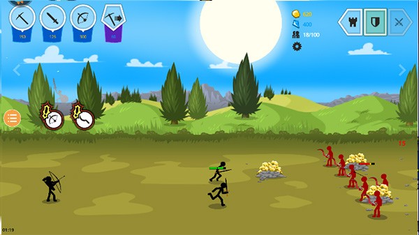 3、你将成为一名将军,指挥你的火柴人军队战斗并消灭所有敌人。