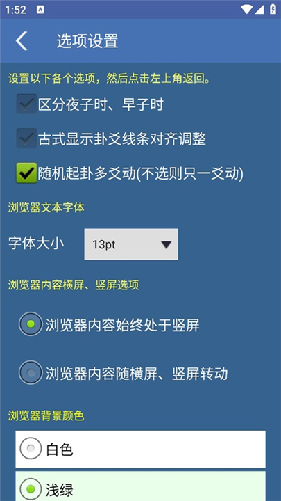 下载六爻排盘手机版是提供多种卜卦与排盘方式的卦象分析工具,可快速生成六十四卦与六爻信息以供参考。应用内支持时间起卦、数字起卦、随机起卦等八种模式,灵活适应不同使用习惯与场景,同时展示详细的卦象内容与象辞解读。用户可根据自身意愿自定义应用界面背景颜色与字体大小,提升视觉与操作体验,为占卜过程增添个性化色彩。保存与分享功能便于记录历史卦象,帮助更好回顾与比较结果,让整体卜卦体验更完整丰富。
