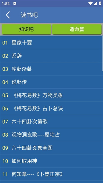 4、如果用户对卦象不太了解,可以点击右上角的三个点选择“读书吧”,查阅各种卦象知识。