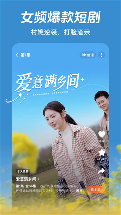 支持将短剧下载至本地,无网络时也能观看,例如通勤途中缓存《首富养女》全集,节省流量的同时保证观影连续性。