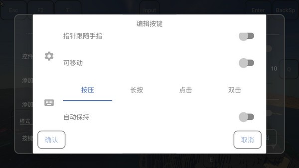 5、可以给虚拟的键盘按键设定按压、长按、点击、双击等操作,大家根据需要调整即可