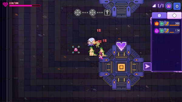 4、进入房间后怪兽会出现在各个位置,击败怪物会掉落不同的物品,玩家控制角色移动,角色会自动攻击出现的敌人,当完成房间里的挑战后就可以通关。