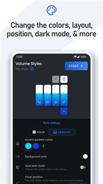 下载音量面板样式中文版是专业的音量面板自定义工具,用户可以根据喜好选择不同系统风格的音量界面。支持Android、iOS、MIUI、EMUI等多种样式,并可自定义面板颜色、圆角、位置及滑块长度。应用还支持添加亮度滑块和快捷操作,使音量调节更便捷。它让每一次音量操作都兼具美观与实用性,为手机UI增添个性化体验。