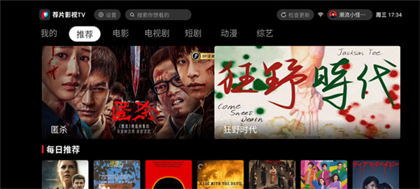 在首页,通过顶部导航栏可轻松切换至电影、电视剧、短剧、动漫、综艺等分类,快速定位你感兴趣的内容。横幅区域展示全网热门影视,且每日推荐板块会根据你的观看历史智能推送专属内容,下滑页面即可加载更多个性化推荐。