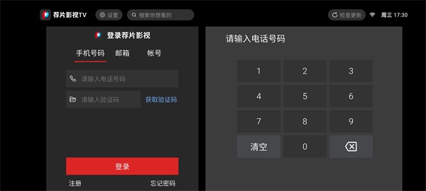 打开荐片电视版后,首先进行注册并登录。你可以选择通过手机号、邮箱或账号登录,登录后即可开始观看所有内容。