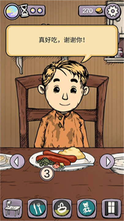 4、在游戏中搜集食物,工作赚钱,同时帮孩子做饭、缝补衣物,陪孩子一起玩