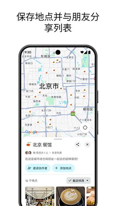 • 创建您喜爱的已保存地点的自定义列表,并与他人分享