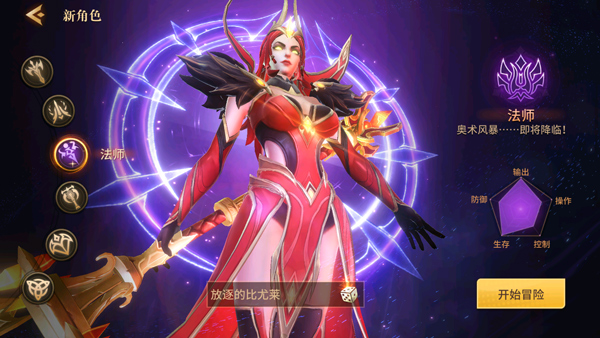 5、小编这里以“战士”为例,选择后编辑昵称,点“开始冒险”;