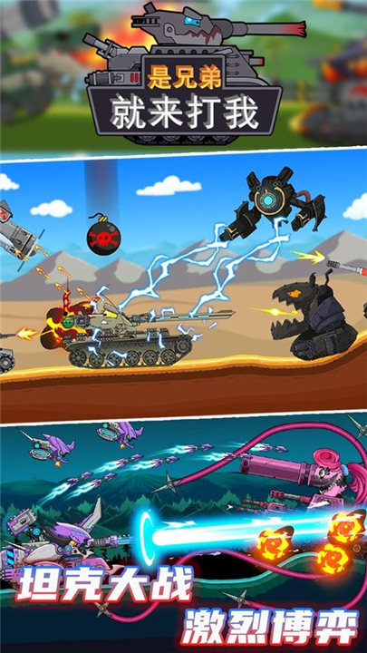 下载是兄弟就来打我最新版是横版坦克射击竞技手游,融合冒险、生存、首领三大模式。玩家将驾驶各类坦克,在荒野沙漠、月黑风高等多种地形中与敌方坦克展开激烈对战。游戏内坦克类型丰富,支持升级强化,配合灵活操控与战术策略,挑战关卡与Boss。新增联机模式,可与好友一同竞技。