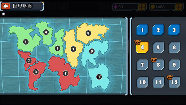 4、小编以冒险模式为例,进入后点击右侧选择关卡进行挑战,关卡上有怪兽标识的代表有敌军首领出没,难度会比较大。