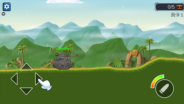 5、关卡1,左下角的左右按钮可以控制坦克前后移动,上下按钮来控制坦克发射方向,右上角代表敌人数量。