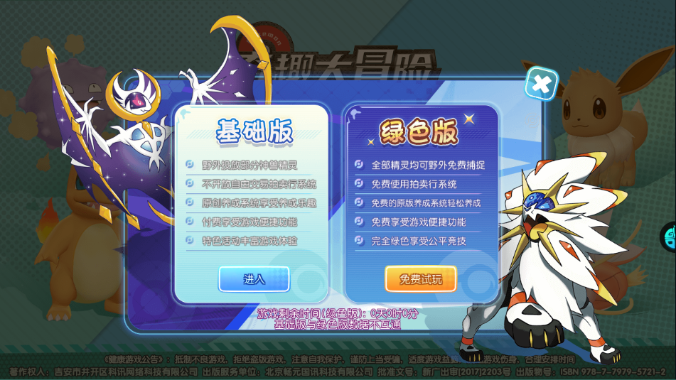 在奇趣大冒险最新版本游戏主页面中,可以切换两种模式板块,基础版和绿色版