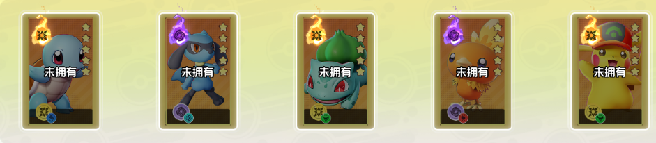 2、杰尼龟+利欧路+妙蛙种子+火稚鸡+帽子皮卡丘