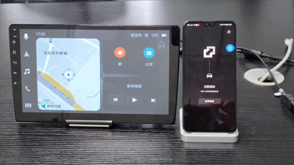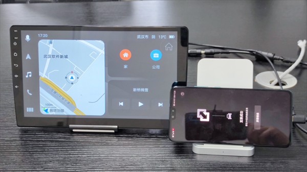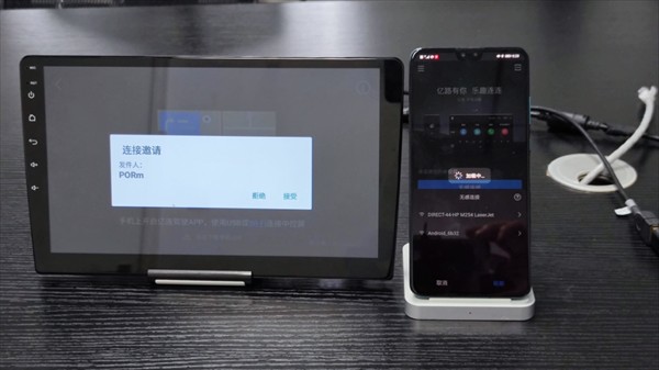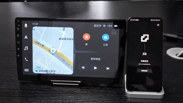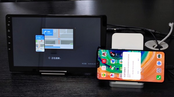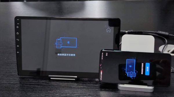 6、连接成功,手机显示黑色遮罩界面,可以直接在中控屏上操作。