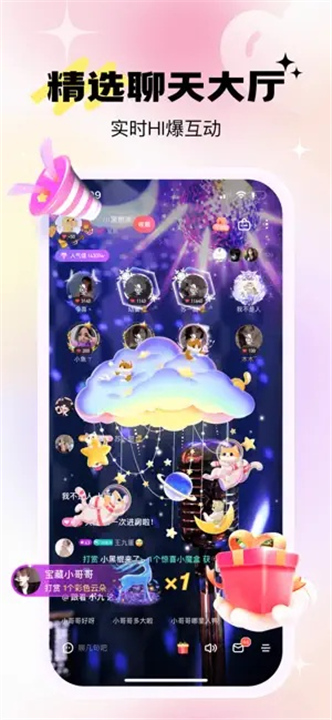 1、语音互动:在线派单、真人点歌、语音交友……语音聊天室24小时在线互动,各路潮流教主齐聚,让你享受尊贵待遇