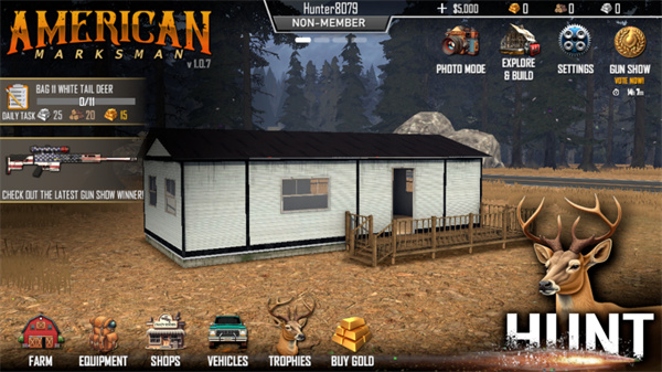 下载美国神枪手中文版是个融合动作射击与荒野求生元素的手游,玩家在草原、雪山等逼真3D场景中探索丛林、建造庇护所、收集物资并猎杀动物。美国神枪手中文版支持多人联机,可约好友一同狩猎,体验户外冒险的乐趣。节奏放松悠闲,既能感受建造庇护所的成就感,也能在狩猎中舒缓压力,满足对荒野求生的向往。
