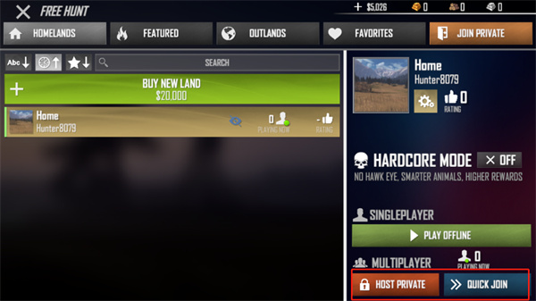 2、然后点击HOST PRIVATE创建房间或者点击QUICK JOIN快速加入;