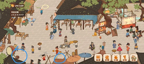 蓝色为萝卜,红色为挖宝,橘色为小孩捉迷藏支线