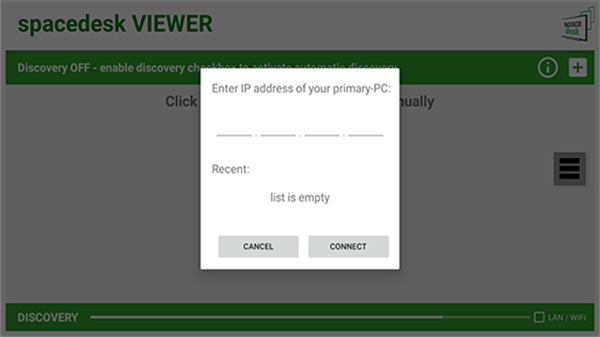 Android设备将自动检测免费的Windows桌面应用。单击以连接并将Android设备转换为触摸屏显示