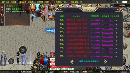1、新手上线第一时间领取免费礼包,终极装备免费打,七个大陆免费探索,首杀奖励,首爆奖励,无限任务完成后领取丰厚奖励。