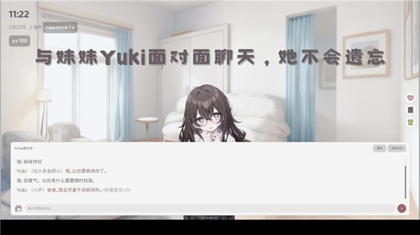 7、通过与妹妹Yuki聊天对话和赠送礼物会提升好感度,当好感到达一定要求后还可以给Yuki换装,有多款可爱的服装可以更换,现在开始你的云养妹生活吧!