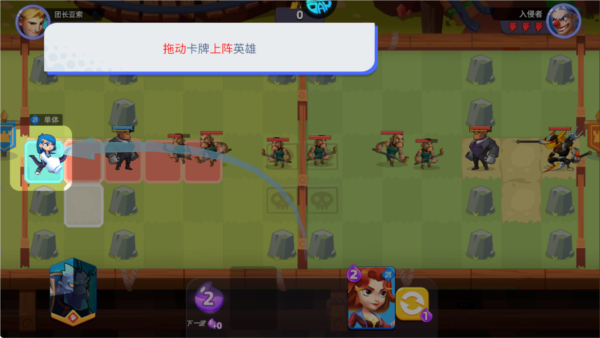 1、进入星际护卫队游戏后,拖动卡牌上阵英雄