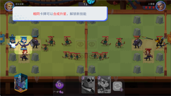 2、相同卡牌可以合成升星,解锁新技能