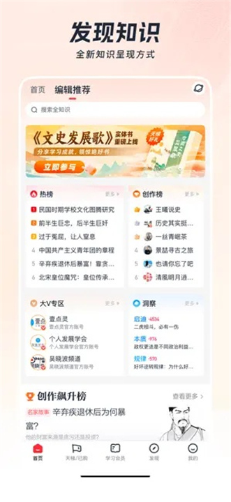 4、点击发现,可以看到各类的知识树,历史风云古今中外的都有。