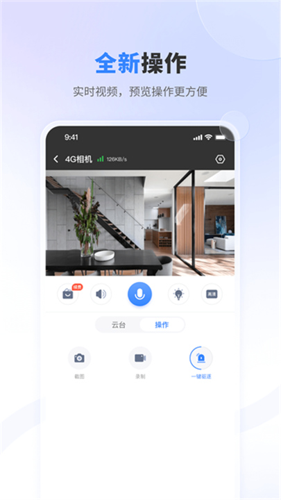 APP支持通过绑定网络摄像机实现高清画质实时预览,画面清晰流畅,延迟低至毫秒级。用户可自由切换单画面或多画面分屏模式,同时查看多个监控点位的实时状态,满足多场景同步管理需求。