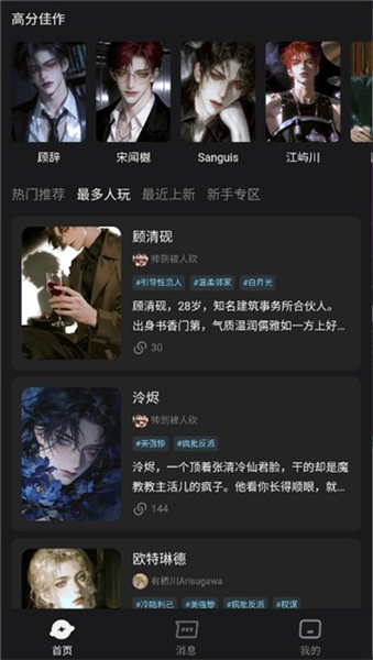 2、首页推荐各种AI角色