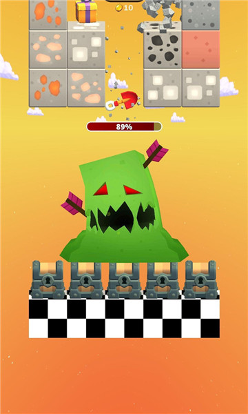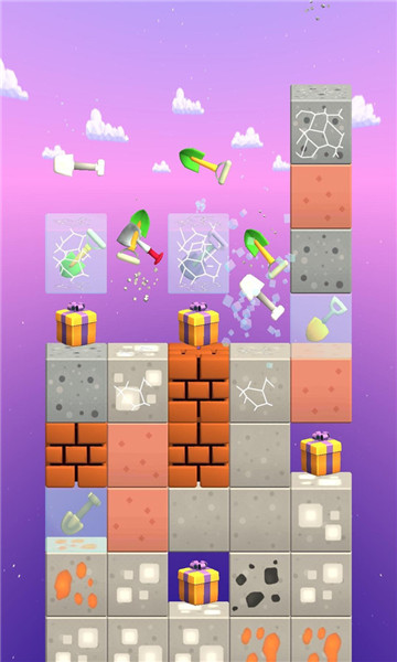 1、游戏中玩家将通过铲子的合成解锁更加强大的铲子,强大的铲子能铲除坚硬的砖块。