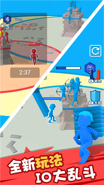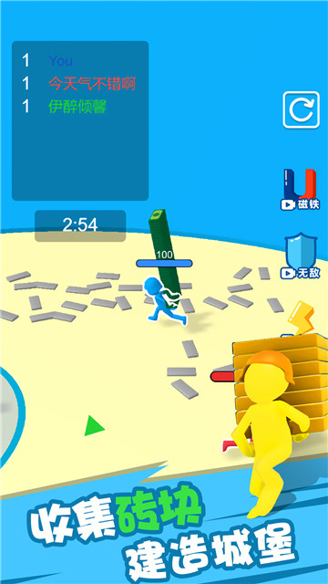你的任务很简单,就是和大量的玩家在地图里拼凑砖头来提升你的城堡。