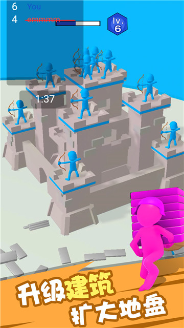 下载孤城危机是一款卡通休闲塔防小游戏,不同阵营的玩家都有不同的色彩,游戏的操作很简单,玩家捡起砖头将其传送到自己的城堡中,这样就可以提升城堡的防御和攻击力,对战的地图会随着关卡的数量改变,玩家可以尽情尝试。