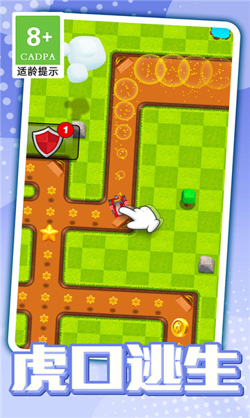1、一路上会有各种障碍和机关,开启一段全新的逃脱之旅,指尖触屏就可以控制卡丁车的移动方向。