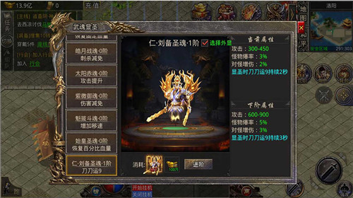 2.首充武器使用王道之卷(官职礼包获得)进阶后可激活强力武魂【始皇圣魂】,吸血、爆率、切割、格挡稀有属性。